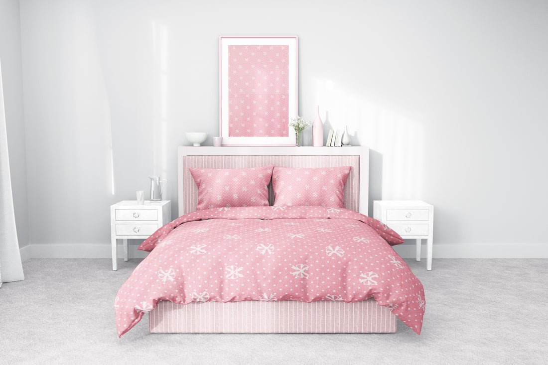 Pudra Pembe Fiyonk Desenli Pamuklu Nevresim Takımı | Lastikli Çarşaflı