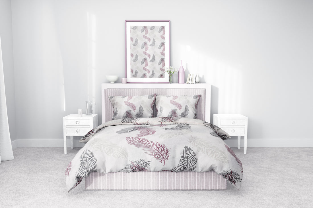 Pudra Tüy Desenli Pamuklu Nevresim Takımı | Lastikli Çarşaflı