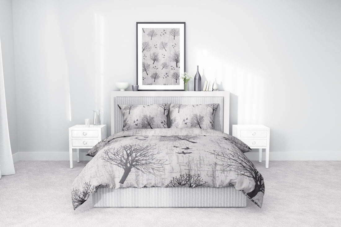 Siyah Ağaç Desenli Pamuklu Nevresim Takımı | Lastikli Çarşaflı