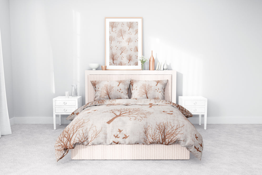 Toprak Tonlarında Ağaç Desenli Pamuklu Nevresim Takımı | Lastikli Çarşaflı