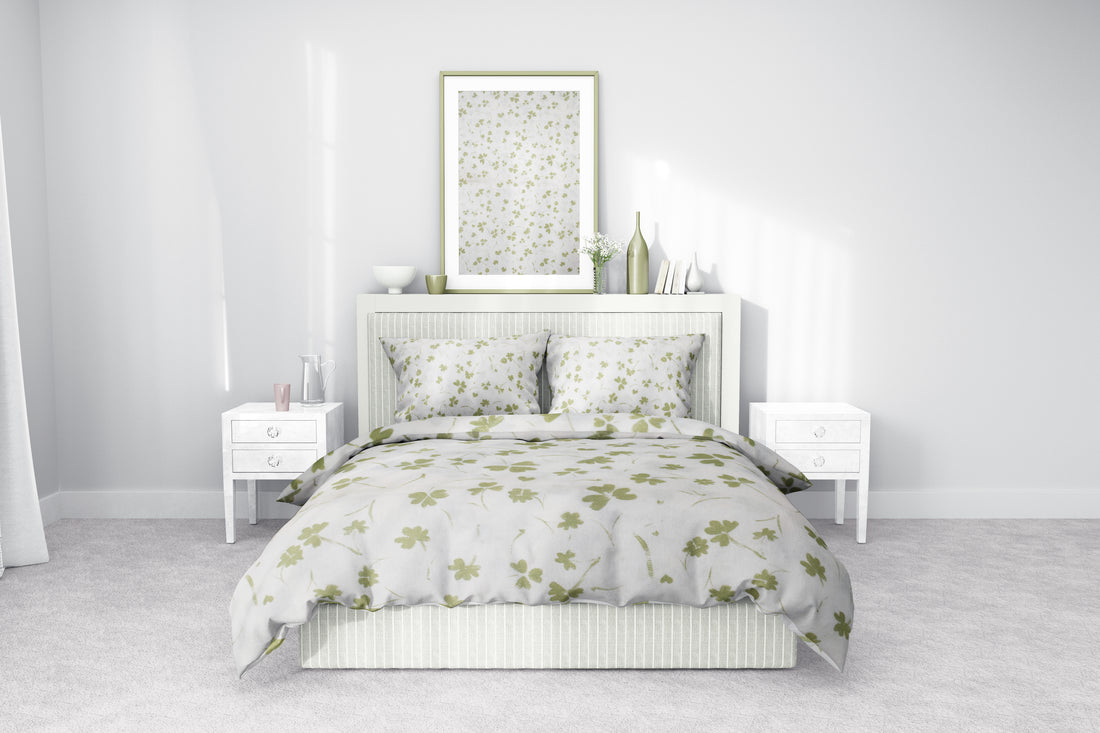 Yeşil Yonca Desenli Pamuklu Nevresim Takımı | Lastikli Çarşaflı