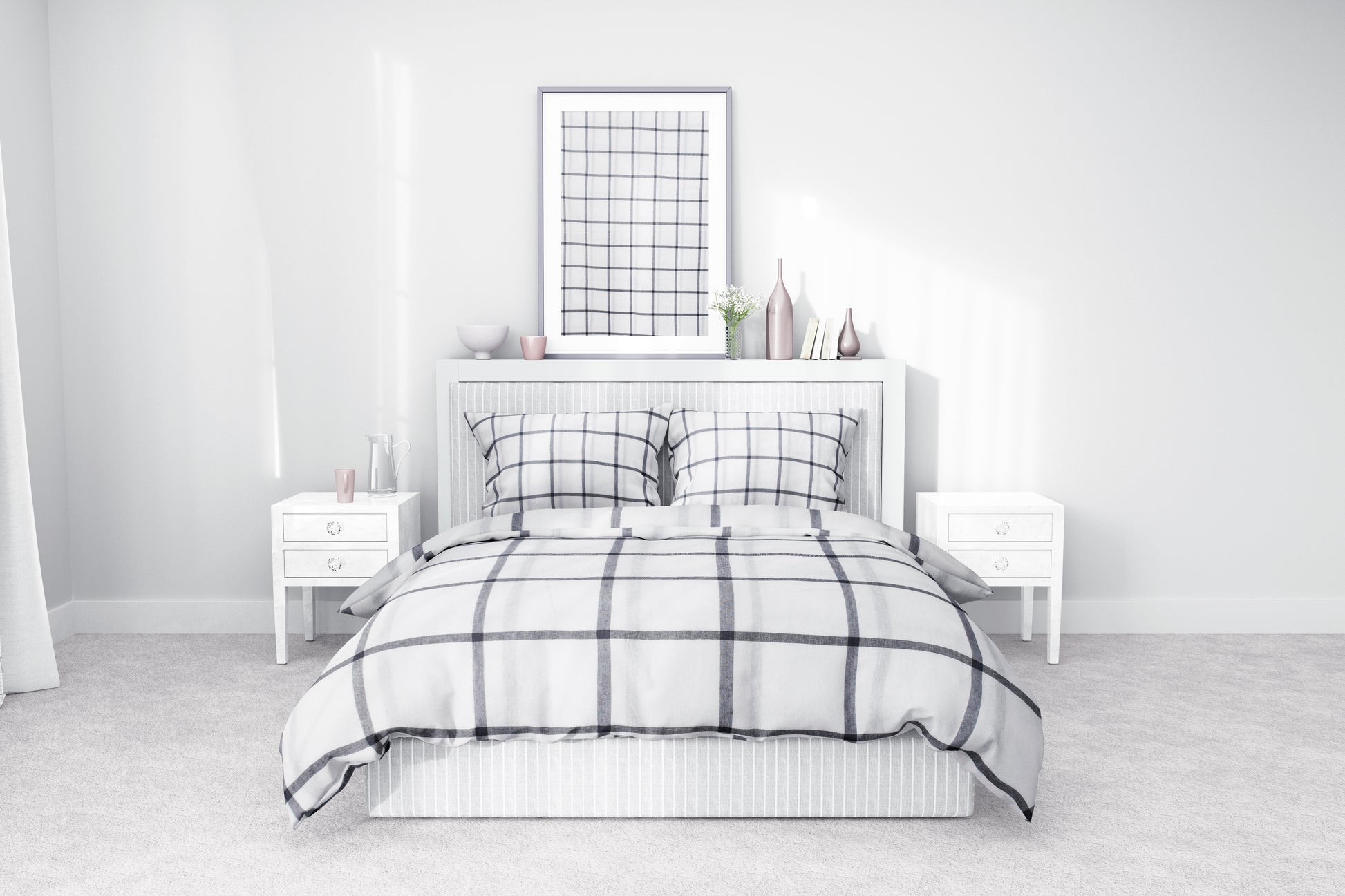 Beyaz Kareli Pamuklu Nevresim Takımı | Lastikli Çarşaflı