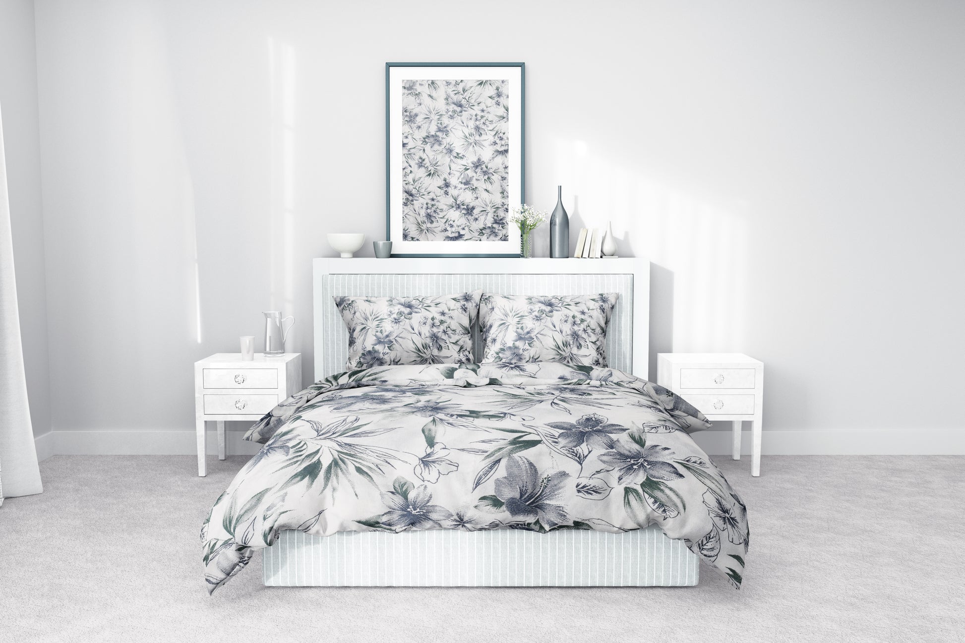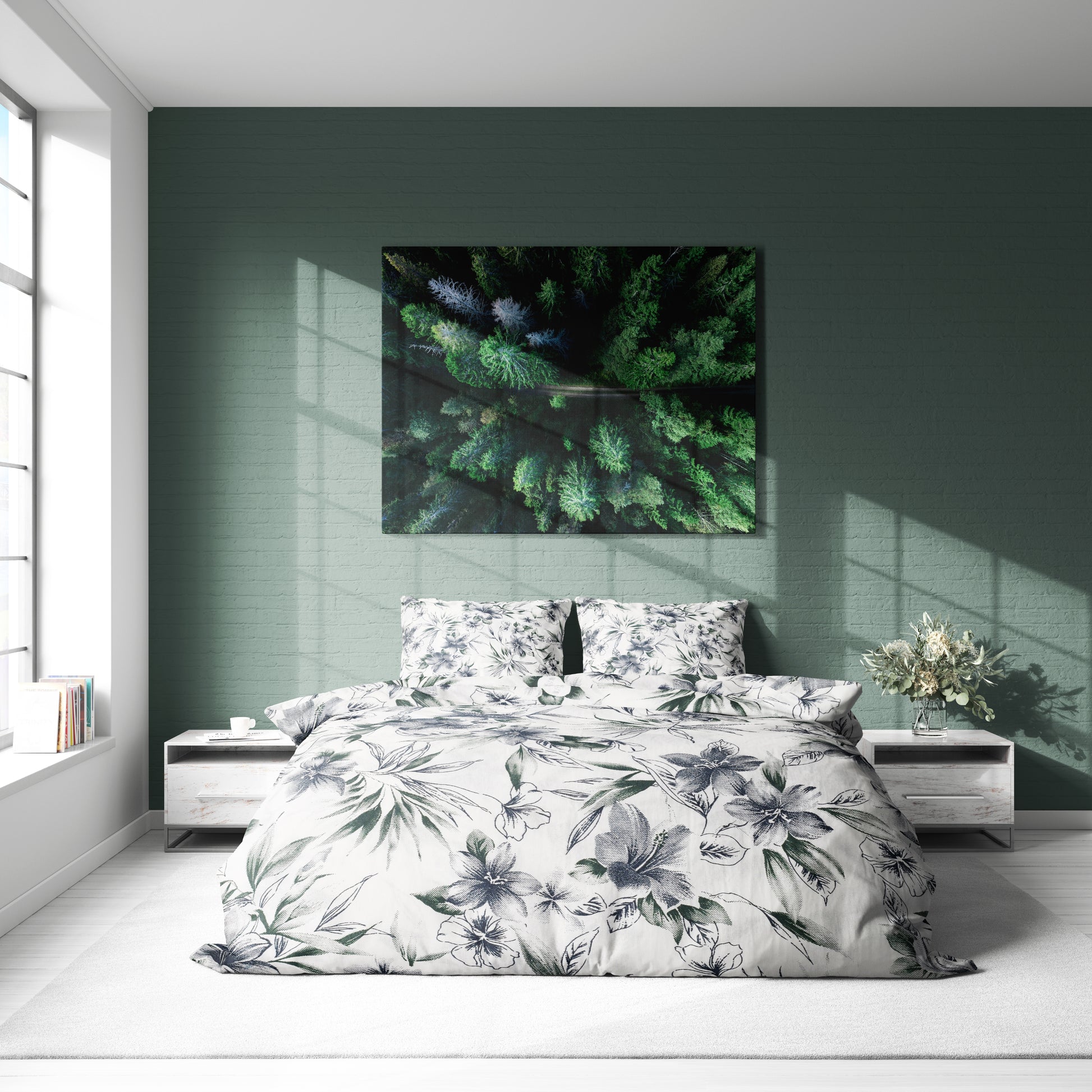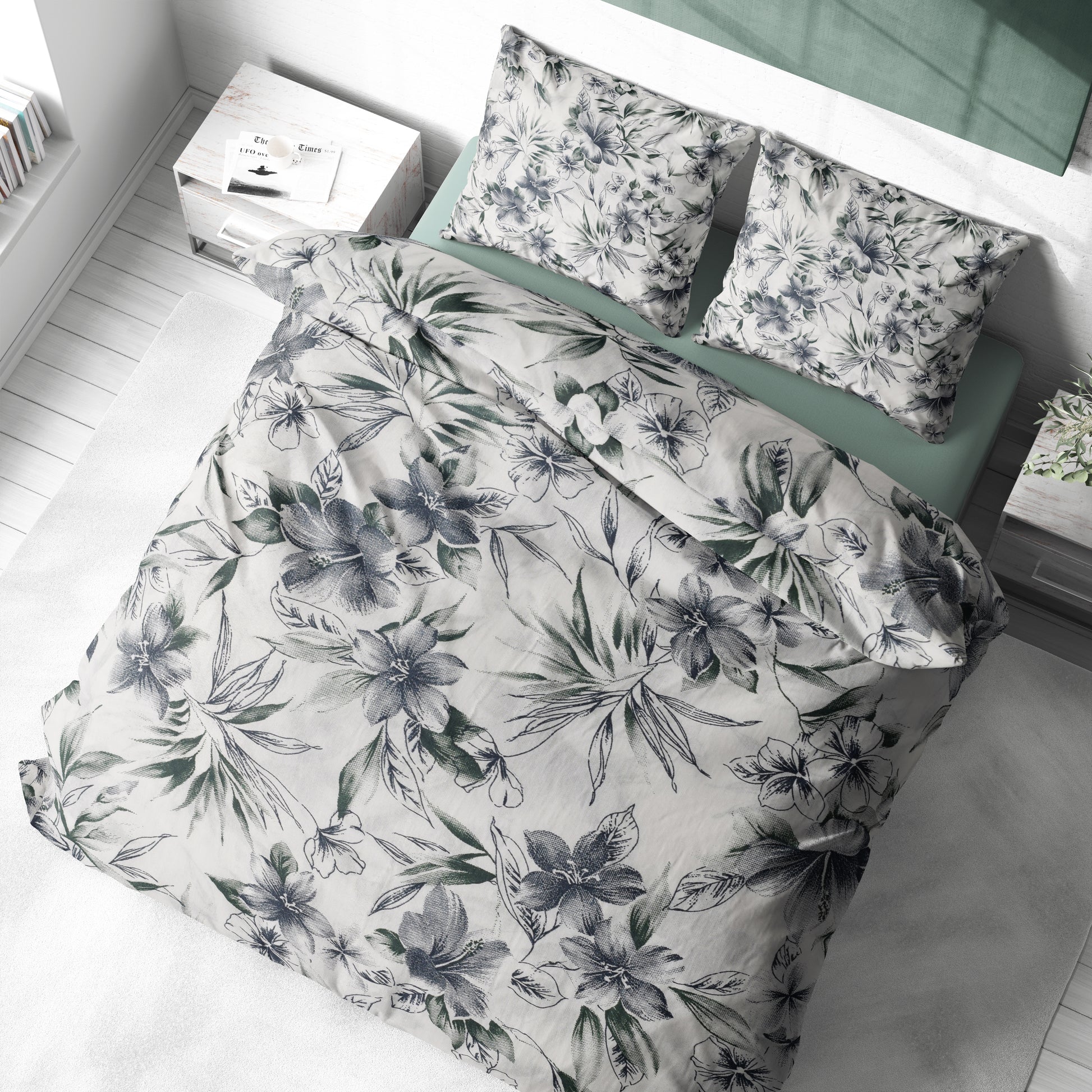 Botanik Çiçek Desenli Pamuklu Nevresim Takımı | Lastikli Çarşaflı