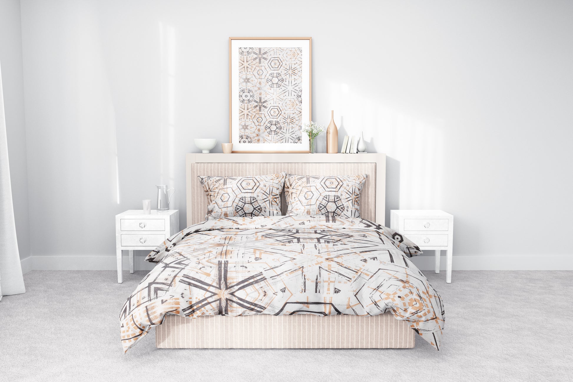 Geometrik Desenli Pamuklu Nevresim Takımı | Lastikli Çarşaflı