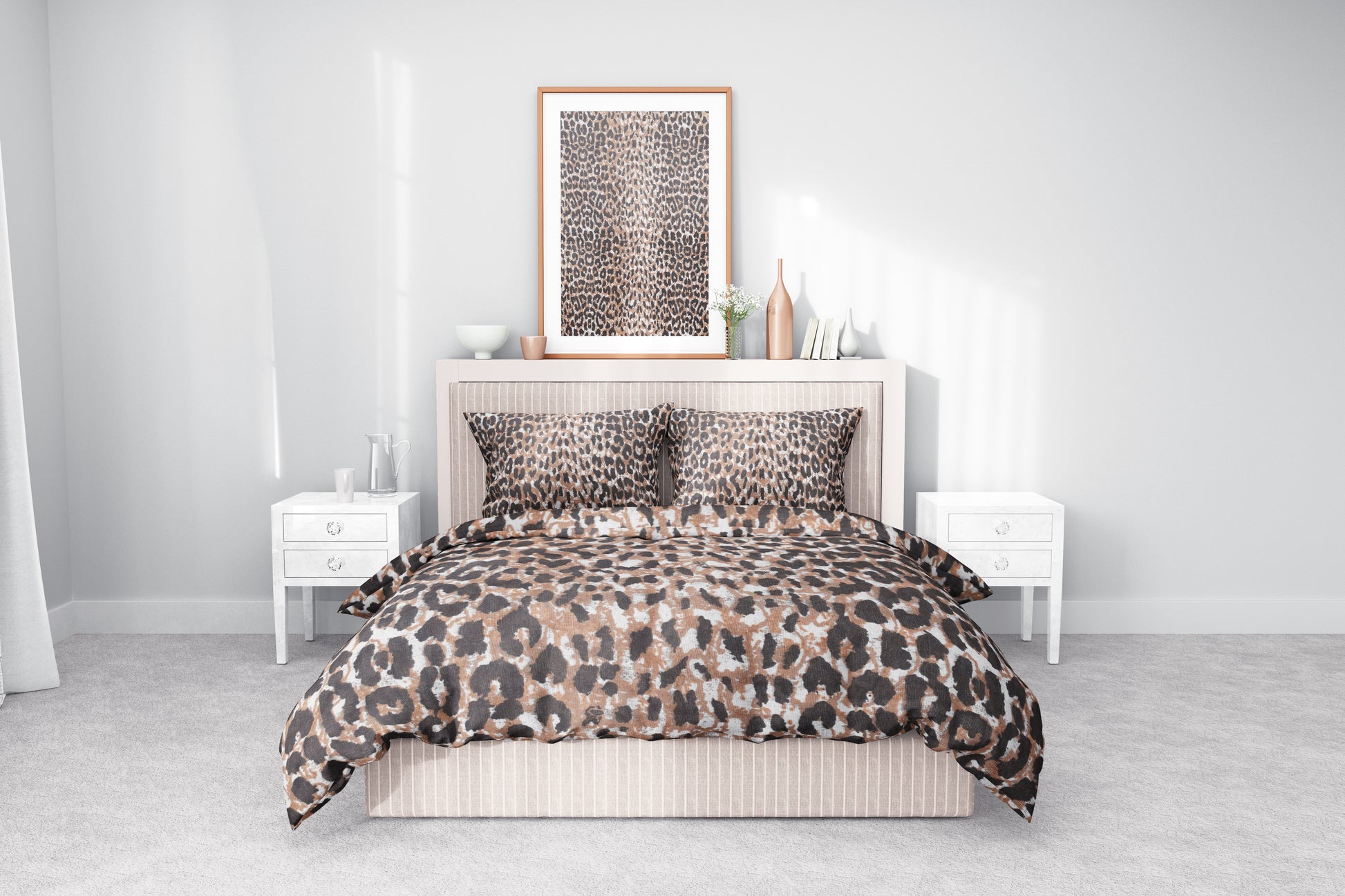 Kahve Leopar Desenli Pamuklu Nevresim Takımı | Lastikli Çarşaflı