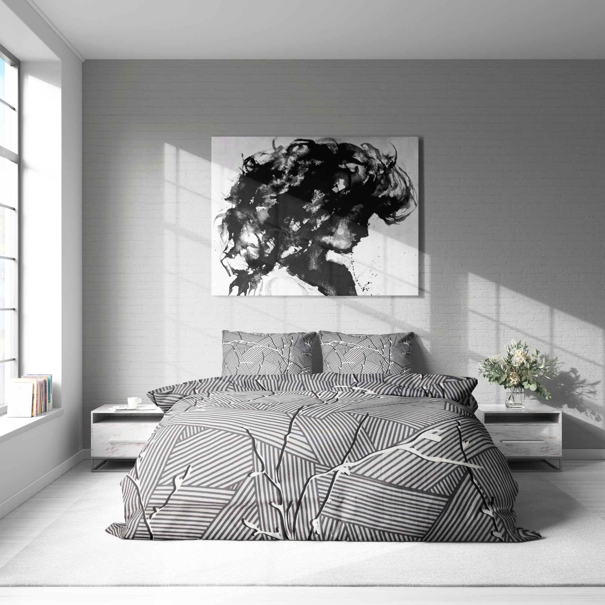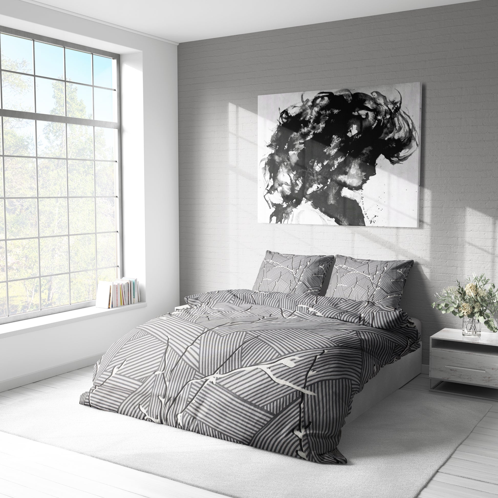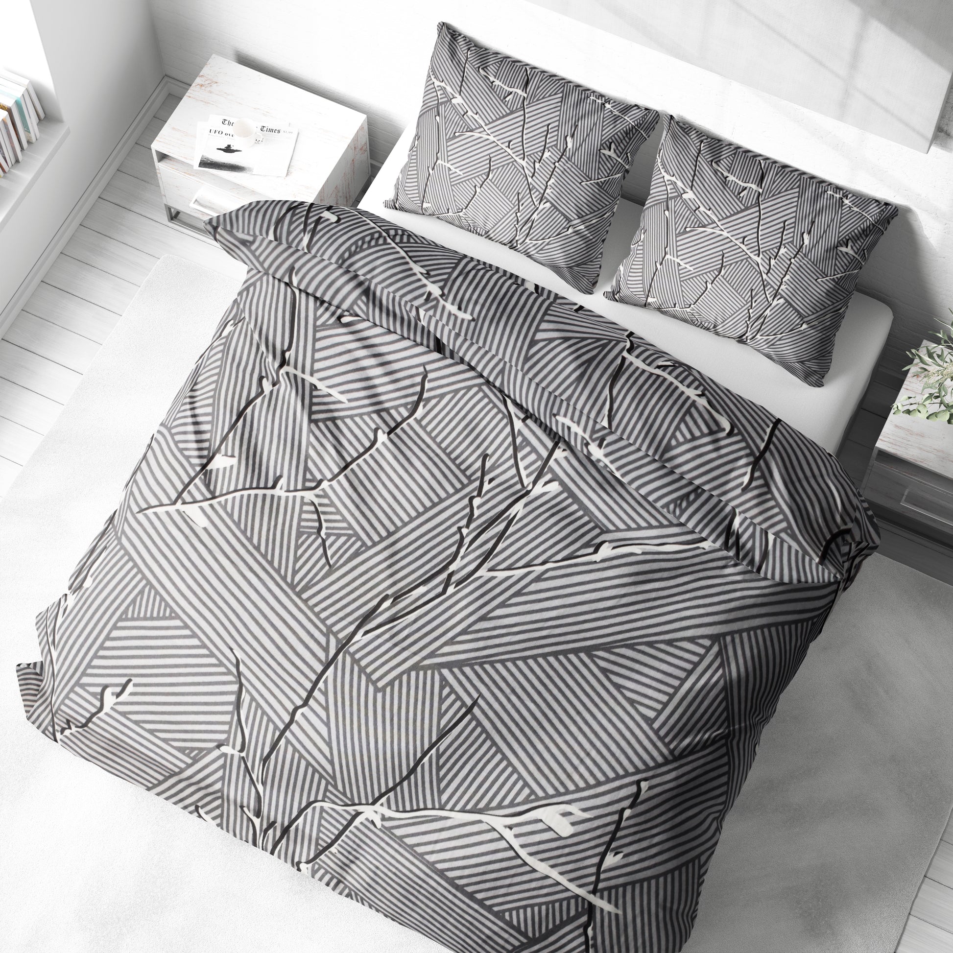 Modern Siyah Beyaz Geometrik Desenli Nevresim Takımı | %100 Pamuklu