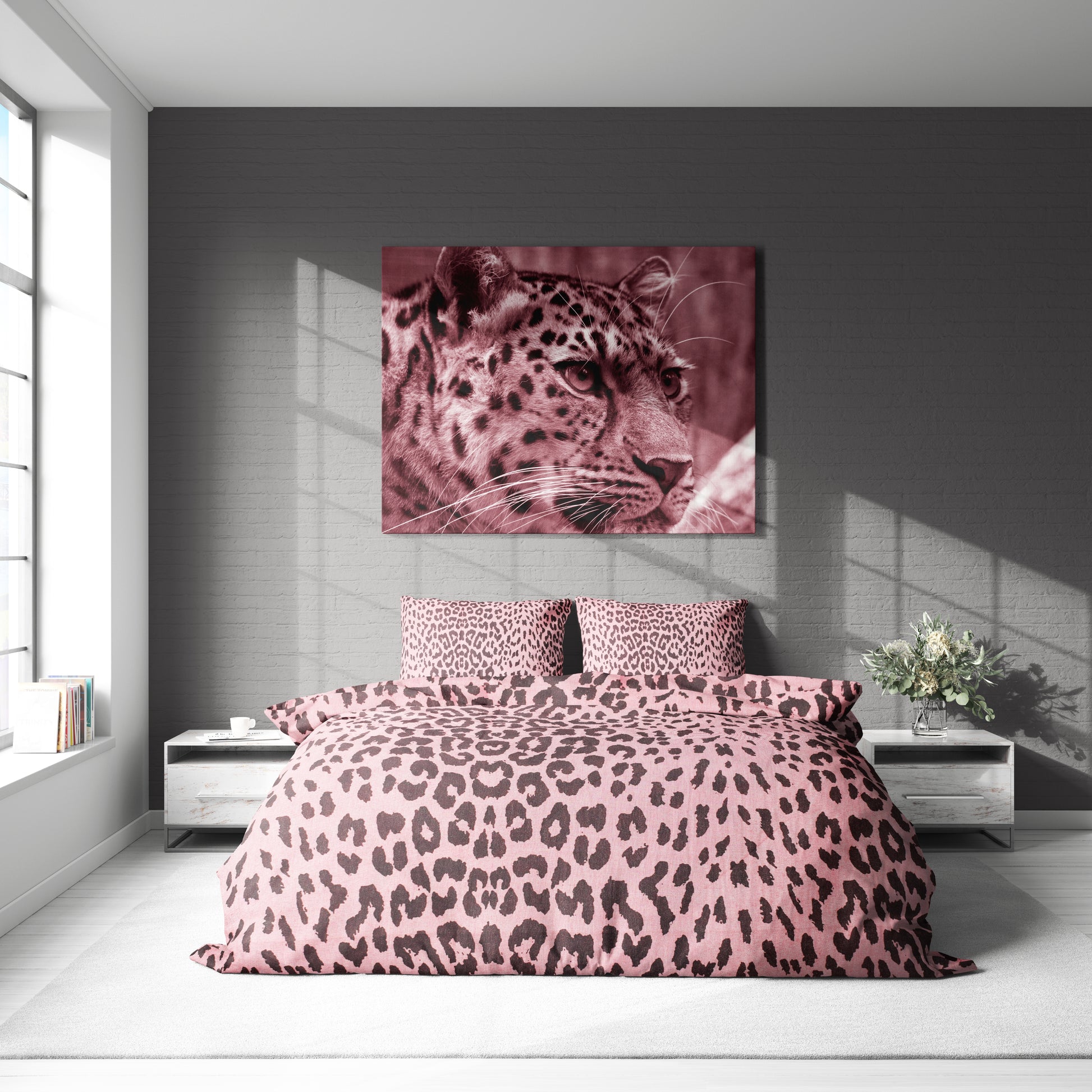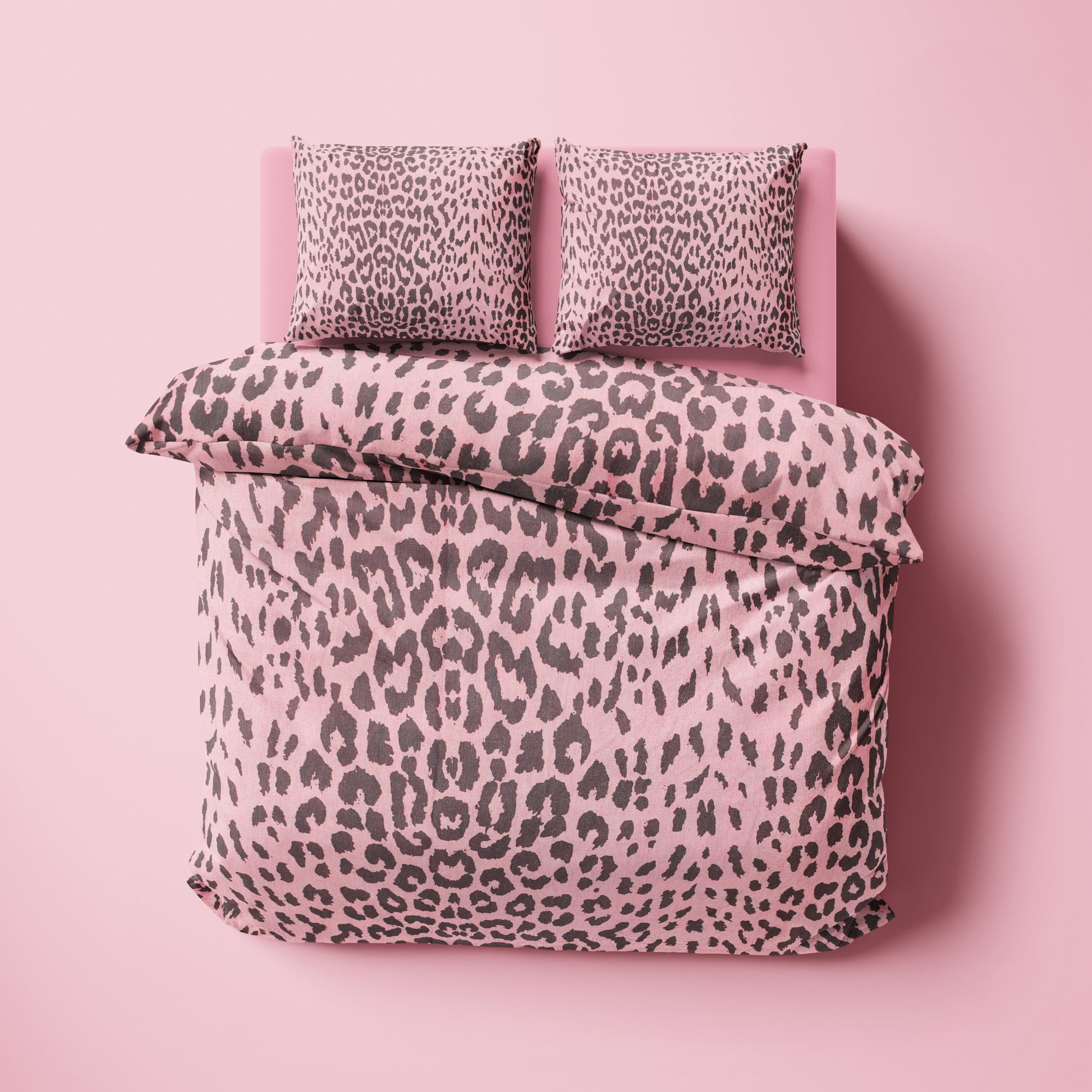 Pembe Leopar Desenli Pamuklu Nevresim Takımı | Lastikli Çarşaflı